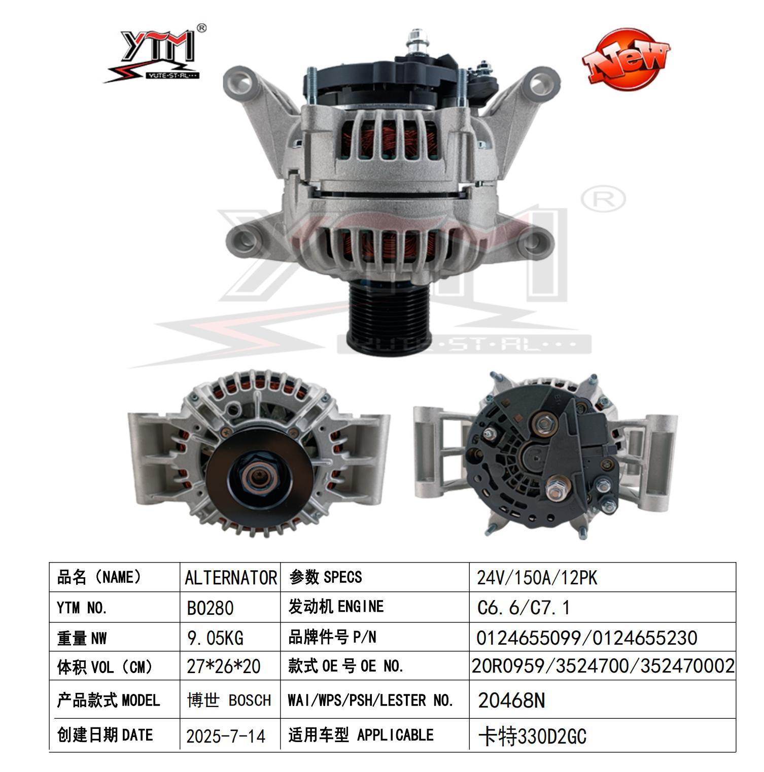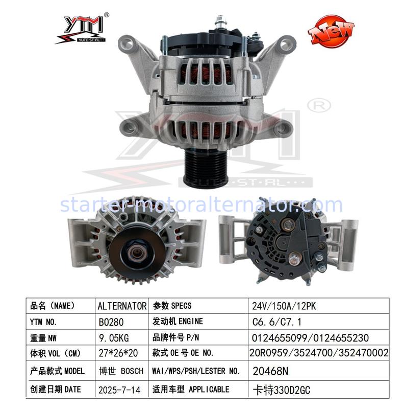 Alternador 24V 150A 12PK Para CAT 330D2GC C6.6 C7.1 0124655099 3524700