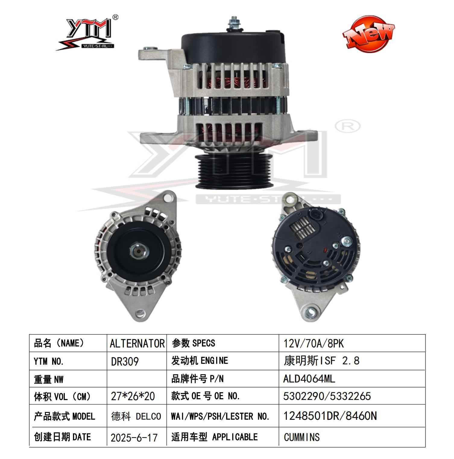 Alternador 12v 70a 8pk de alta qualidade Premium para Cummins Isf 2.8 ONAN 5302290 5332265