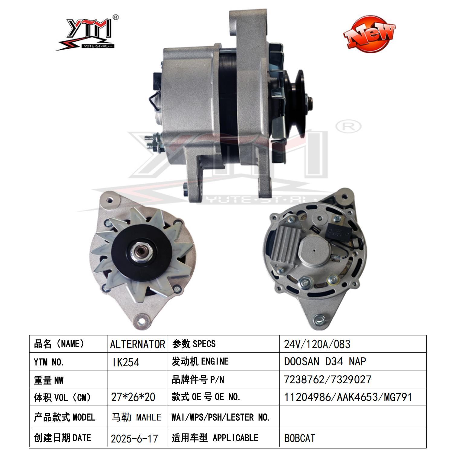 Alternador Premium 12V 120A O83 de ranhura única para Bobcat modelo Mahle AAK4917/AAK4653/11.204.629/MG791
