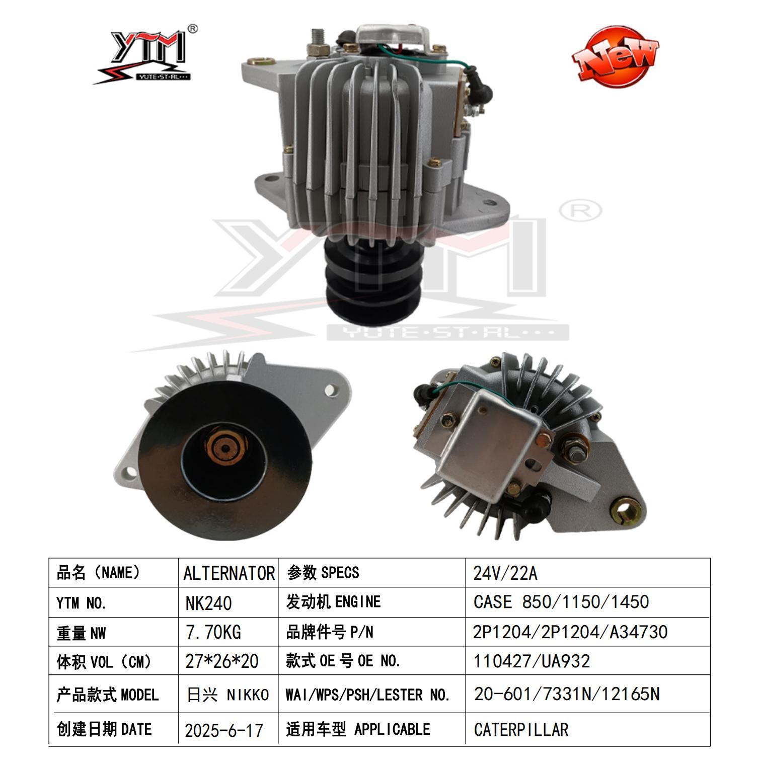 Destacar: | Alternador 24V 22A,Alternador Cat 7331N 22A,Alternador Cat 7331N 20-601 2P1698 |